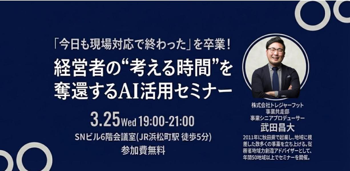 「今日も現場対応で終わった」を卒業!経営者の“考える時間”を奪還するAI活用セミナー